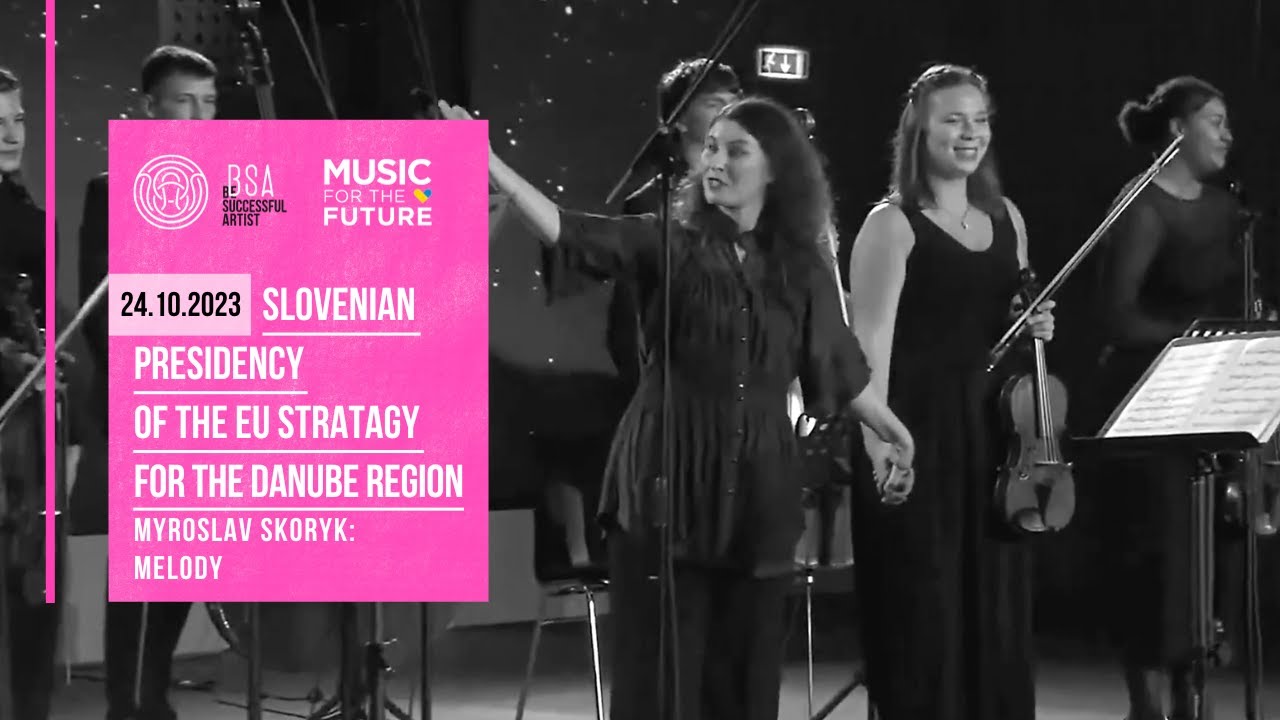 The event focused on the symbiosis of the talents of young Ukrainian musicians who, through the “Music for the Future” project, have found refuge in Slovenia and their Slovenian peers. Together they joined forces in the framework of the musical and educational activities offered by the Slovenian Youth Orchestra (SMO). This unique fusion of talents came to the fore at the EUSDR. The chamber ensemble, featuring both Ukrainian and Slovenian musicians, presented an outstanding musical programme. The highlight of the evening was the performance of the European anthem in Ukrainian, performed by Marina Dolibets.