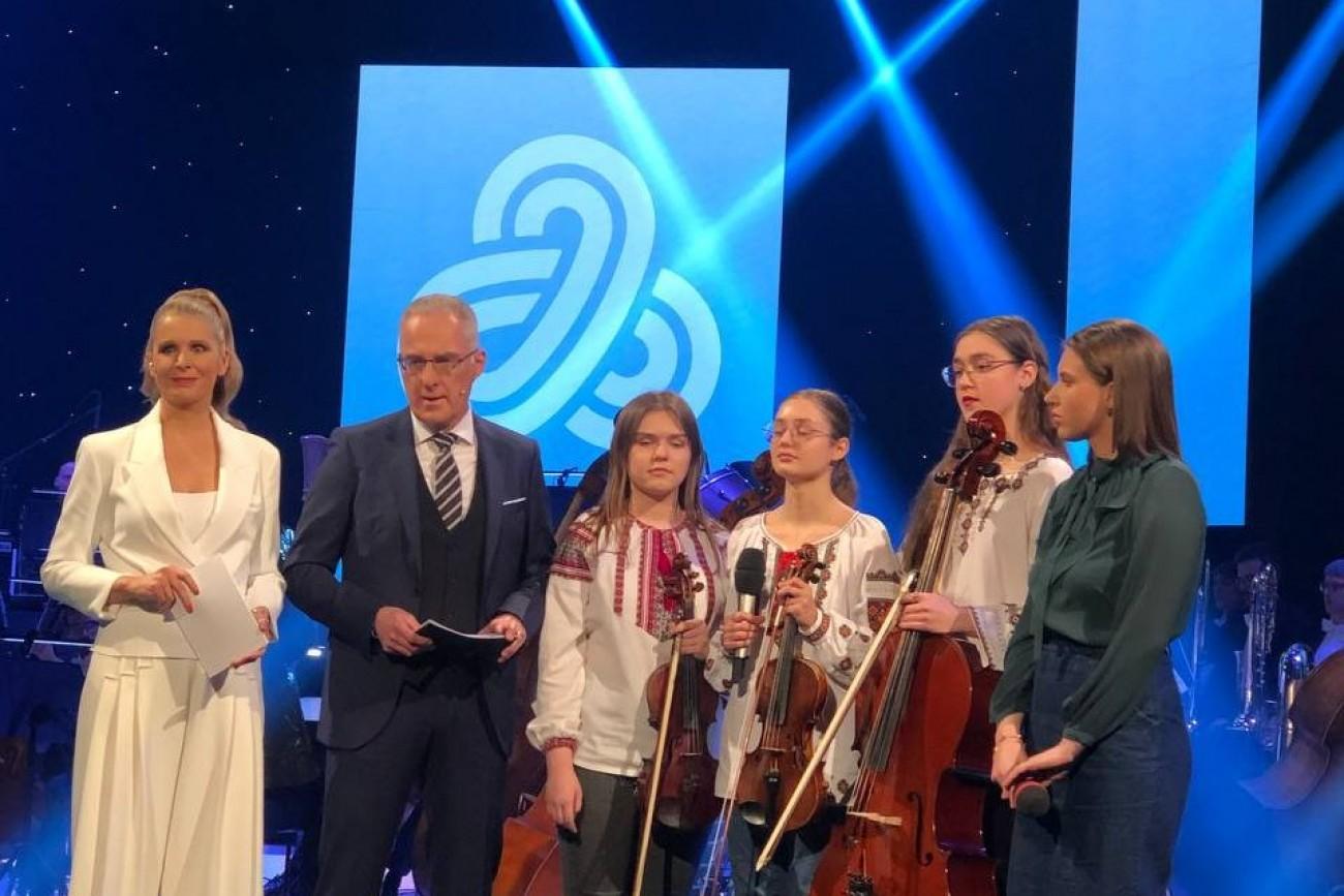 The National Television invited the young musicians of the Youth Symphonic Orchestra of Ukraine, who had only just arrived in Ljubljana in the night of 6 March, to tell their stories and to play the national anthem of Ukraine within the framework of a special charity concert for Ukraine.